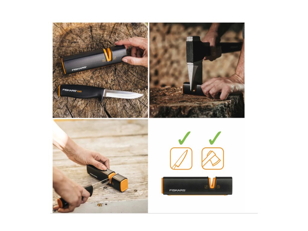 Ostrič Fiskars Xsharp zaisťuje optimálne nabrúsenie ostria u sekier i nožov a je určený pre pravidelnú starostlivosť o nože a sekery Fiskars. Xsharp predstavuje dva ostriče v jednom - brúsny uhol je optimalizovaný pre nože aj sekery.. Jednoducho sa používa, vďaka dĺžke 16,5 cm a hmotnosti 90 g sa pohodlne prenáša a ľahko sa čistí vďaka možnosti rozobratia. Nekĺzavá spodná strana zaisťuje bezpečné ostrenie. Ostrič je vhodný pre pravákov aj pre ľavákov.Dodatočné parametre