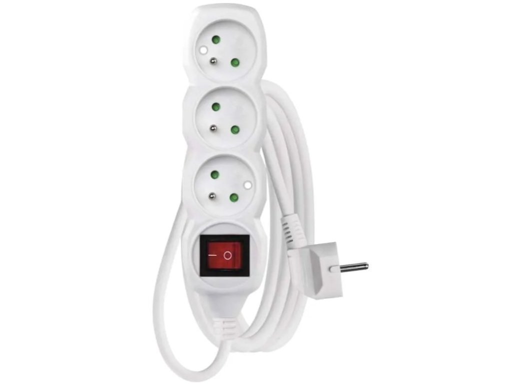 Predlžovací prívod 3-zásuvka 3m+vyp. biela