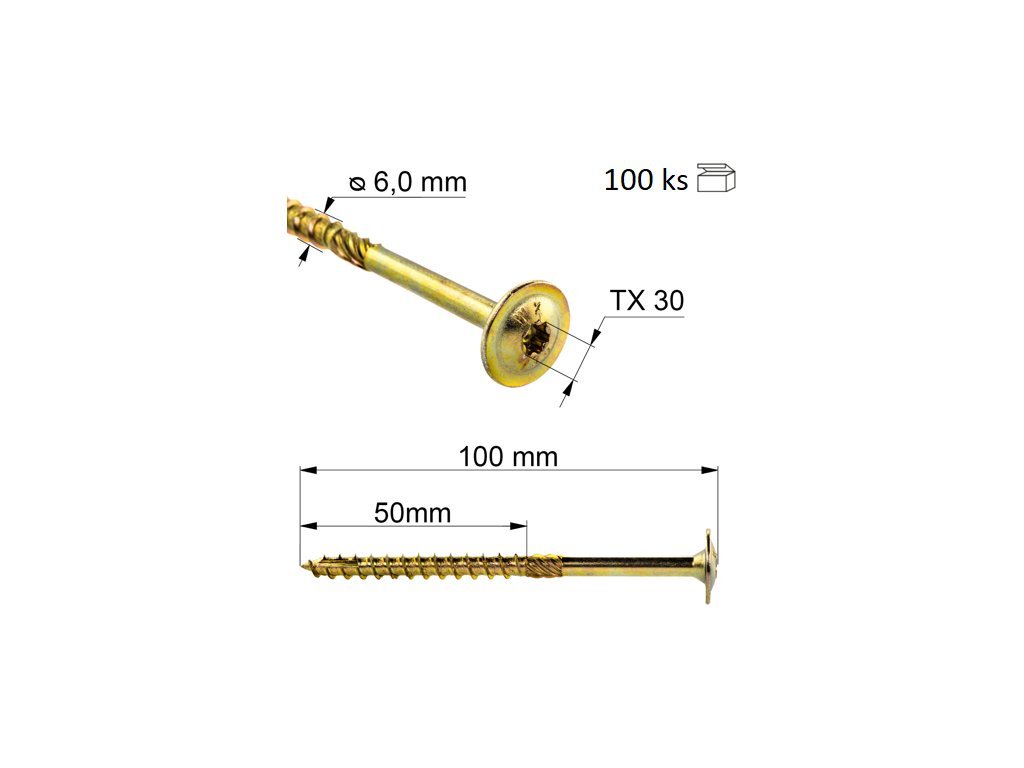 Vrúty/skrutky do dreva s tanierovou hlavou - WKCP 6x100 mm