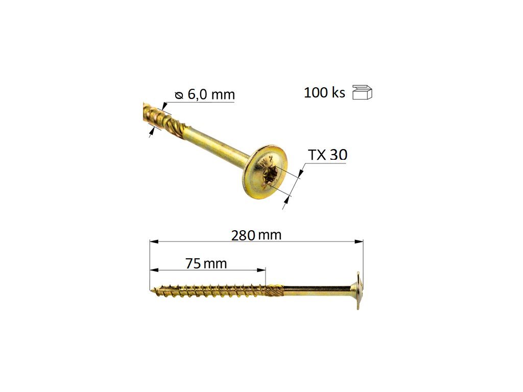 Vrúty/skrutky do dreva s tanierovou hlavou - WKCP 6x280 mm