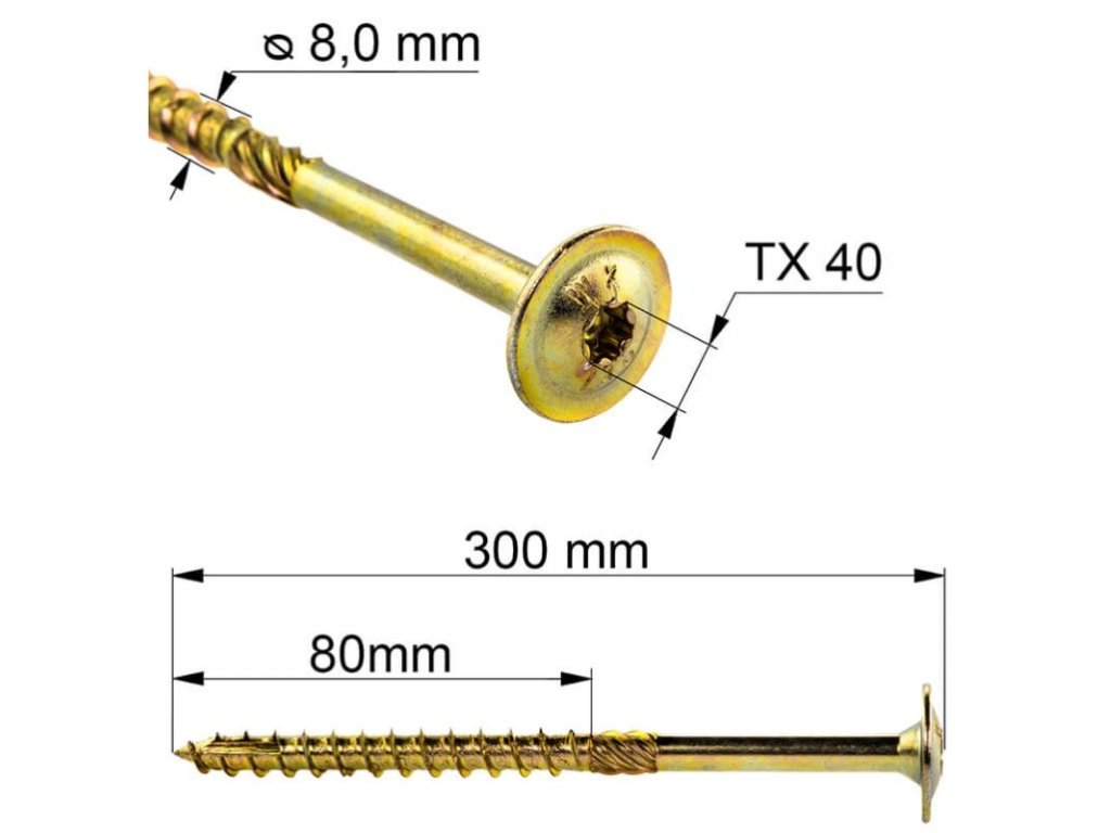 Vrúty/skrutky do dreva s tanierovou hlavou - WKCP 8X300 mm
