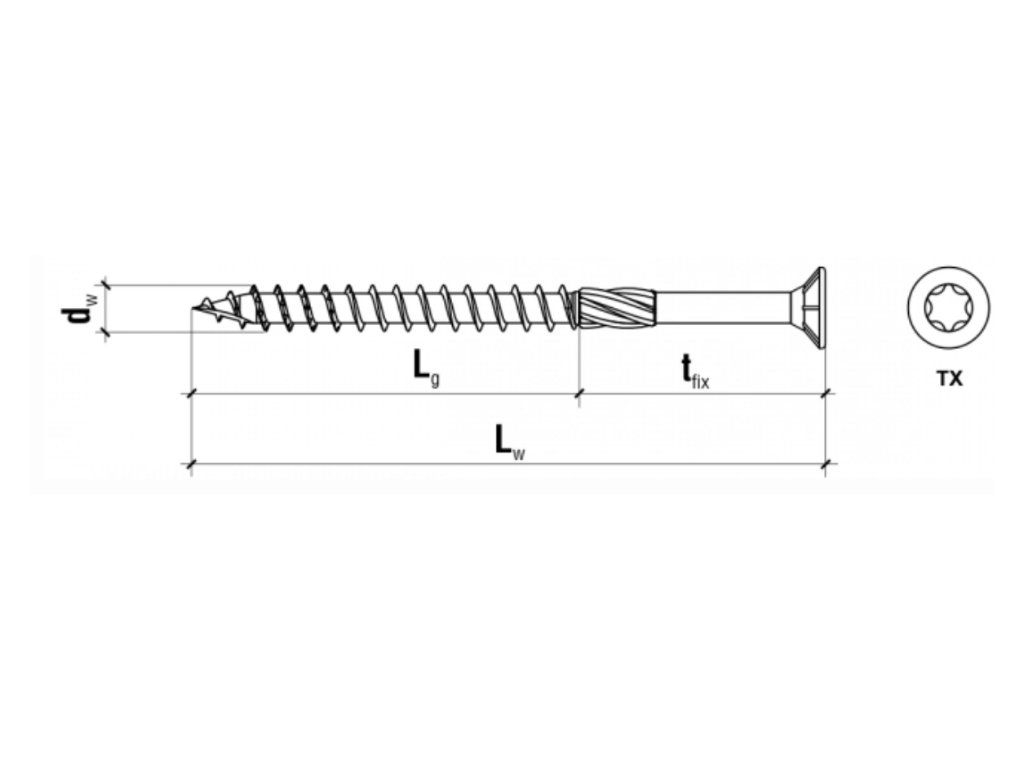 - Skrutky s hniezdom TORX sú vhodné pre spájanie drevených konštrukcií a iných prvkov ako napr. preglejka, drevo, OSB dosky.