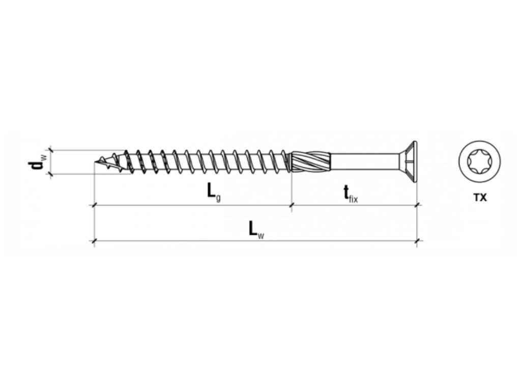 - Skrutky s hniezdom TORX sú vhodné pre spájanie drevených konštrukcií a iných prvkov ako napr. preglejka, drevo, OSB dosky.