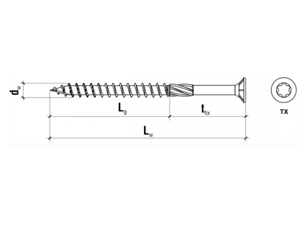 - Skrutky s hniezdom TORX sú vhodné pre spájanie drevených konštrukcií a iných prvkov ako napr. preglejka, drevo, OSB dosky.