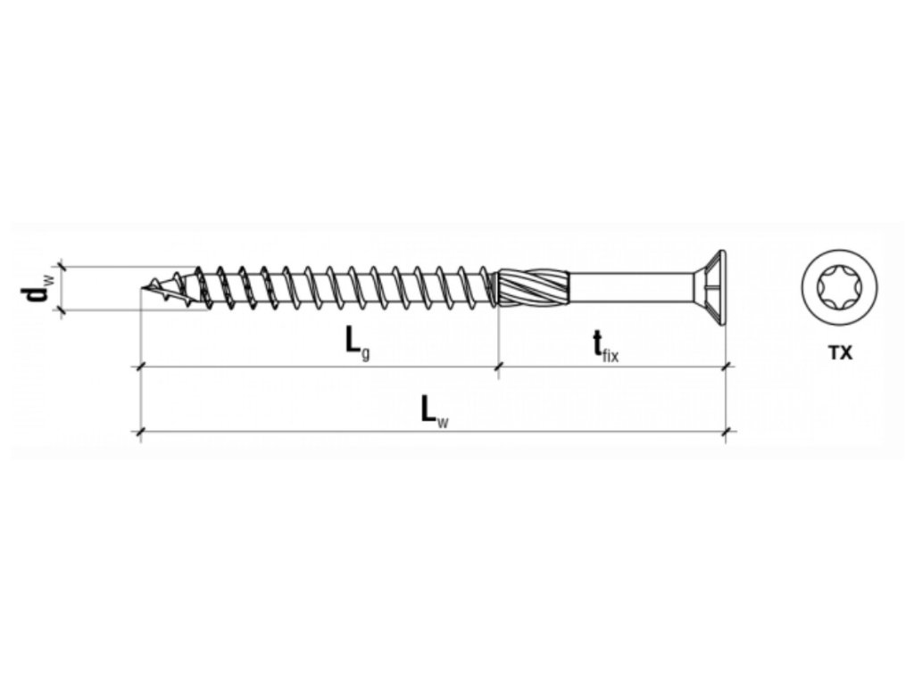 - Skrutky s hniezdom TORX sú vhodné pre spájanie drevených konštrukcií a iných prvkov ako napr. preglejka, drevo, OSB dosky.