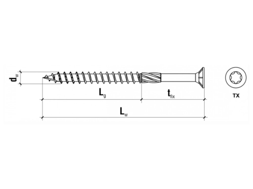 - Skrutky s hniezdom TORX sú vhodné pre spájanie drevených konštrukcií a iných prvkov ako napr. preglejka, drevo, OSB dosky.