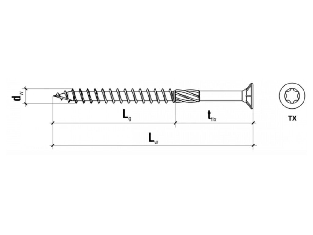 - Skrutky s hniezdom TORX sú vhodné pre spájanie drevených konštrukcií a iných prvkov ako napr. preglejka, drevo, OSB dosky.