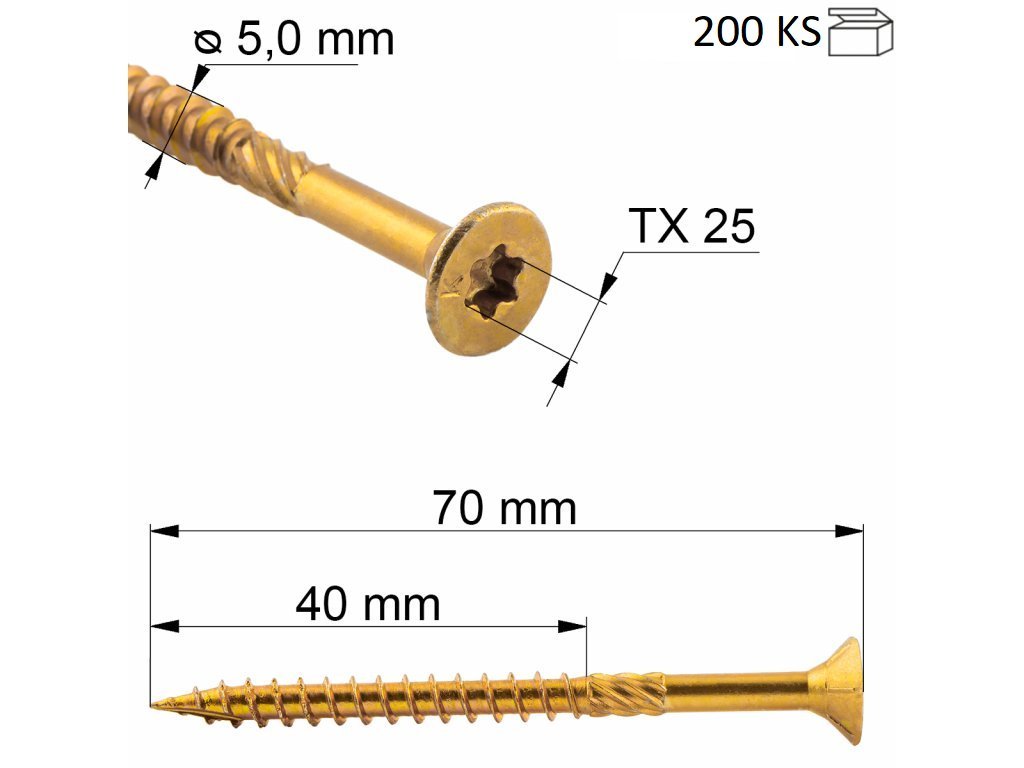 - Skrutky s hniezdom TORX sú vhodné pre spájanie drevených konštrukcií a iných prvkov ako napr. preglejka, drevo, OSB dosky.