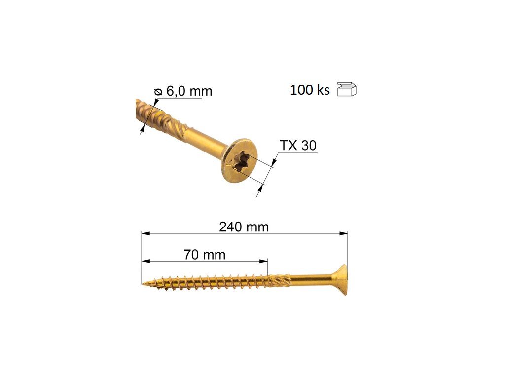 Vrúty / Skrutky do dreva so zapustenou hlavou - KMWHT 6x240 mm