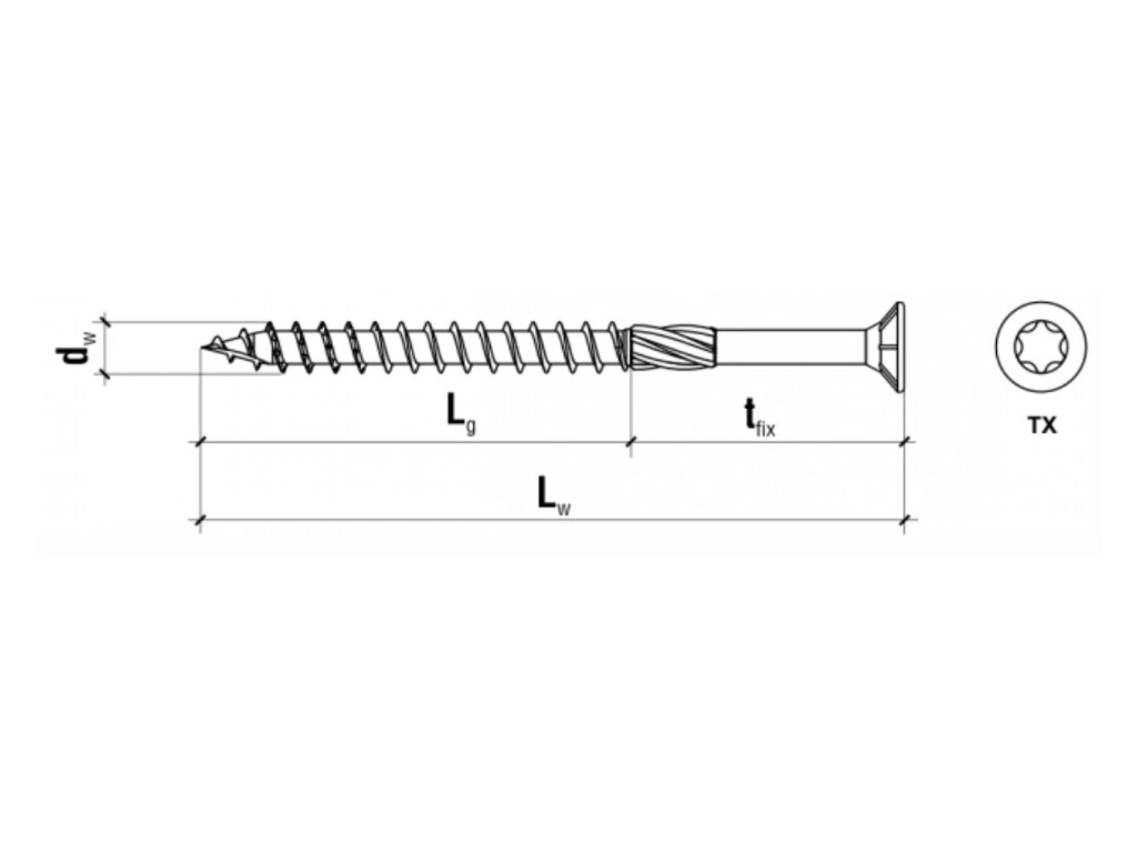 - Skrutky s hniezdom TORX sú vhodné pre spájanie drevených konštrukcií a iných prvkov ako napr. preglejka, drevo, OSB dosky.