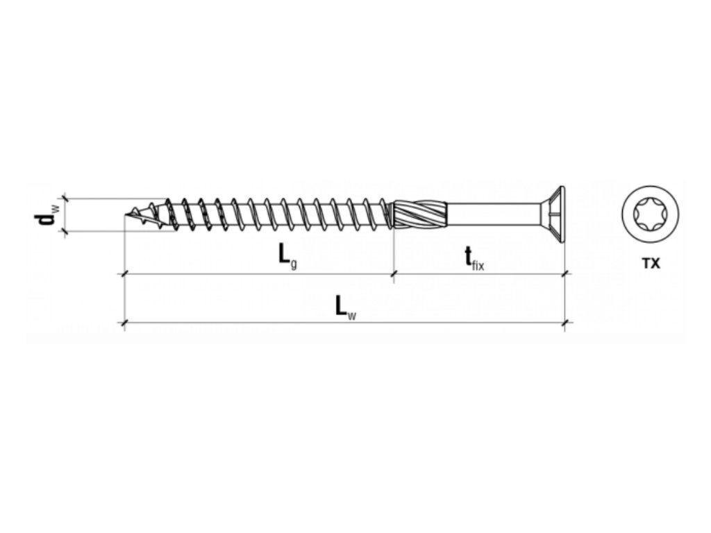 - Skrutky s hniezdom TORX sú vhodné pre spájanie drevených konštrukcií a iných prvkov ako napr. preglejka, drevo, OSB dosky.