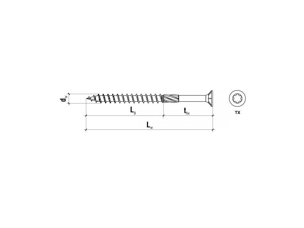 - Skrutky s hniezdom TORX sú vhodné pre spájanie drevených konštrukcií a iných prvkov ako napr. preglejka, drevo, OSB dosky.